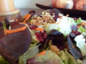 These pictures are of a dinner Jason and I had for Valentines Day. Sure, we could have spent $60 for dinner and wine for two on this special holiday, but we chose to make dinner together and eat at home. We bought good steaks from the local butcher and a nice bottle of wine. We also made a simple salad with dried cranberries, and some sauteed green beans with slivered almonds. I can guarantee that this meal was healthier and cheaper than any meal we would have got at a restaurant, and making it was half of the fun!