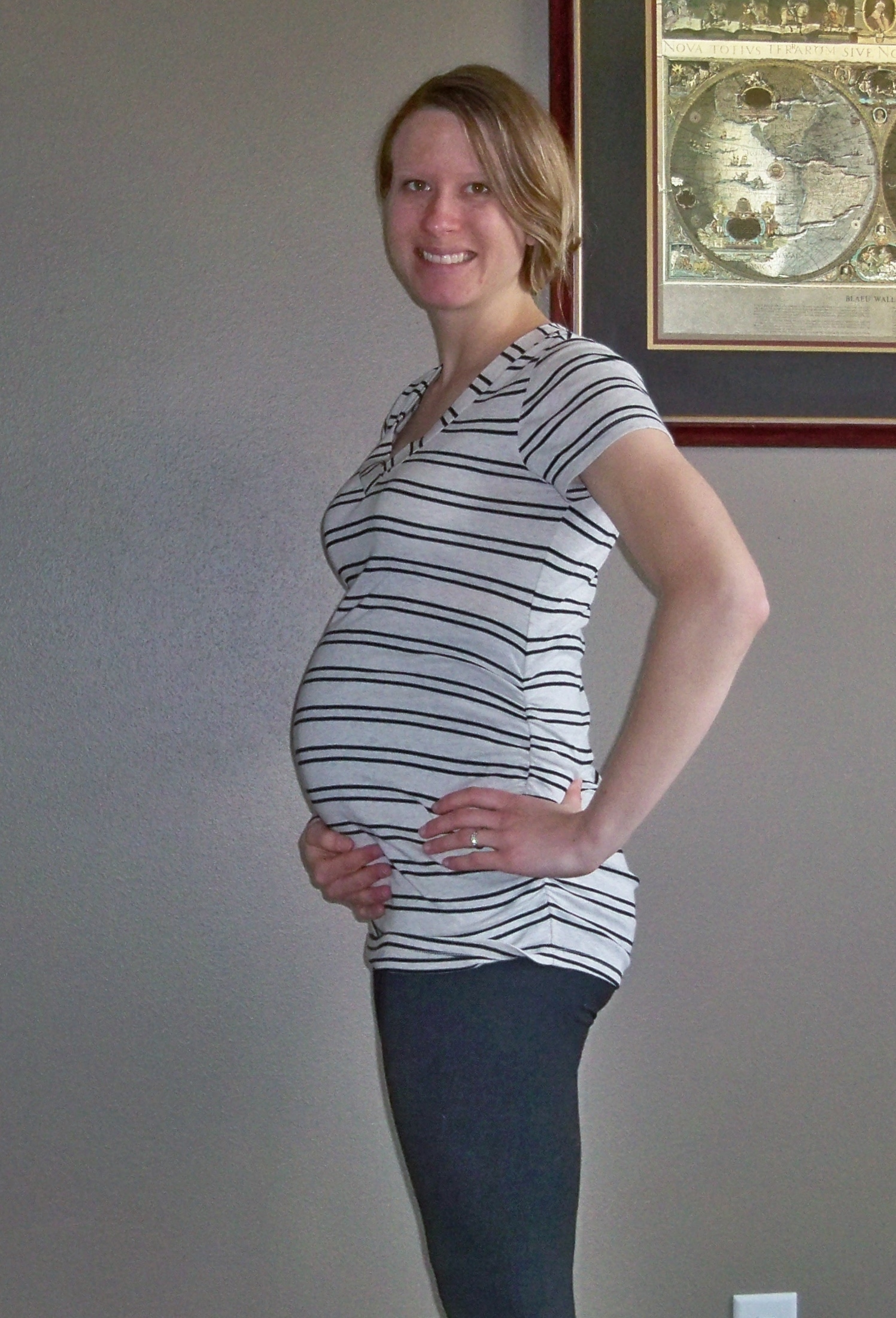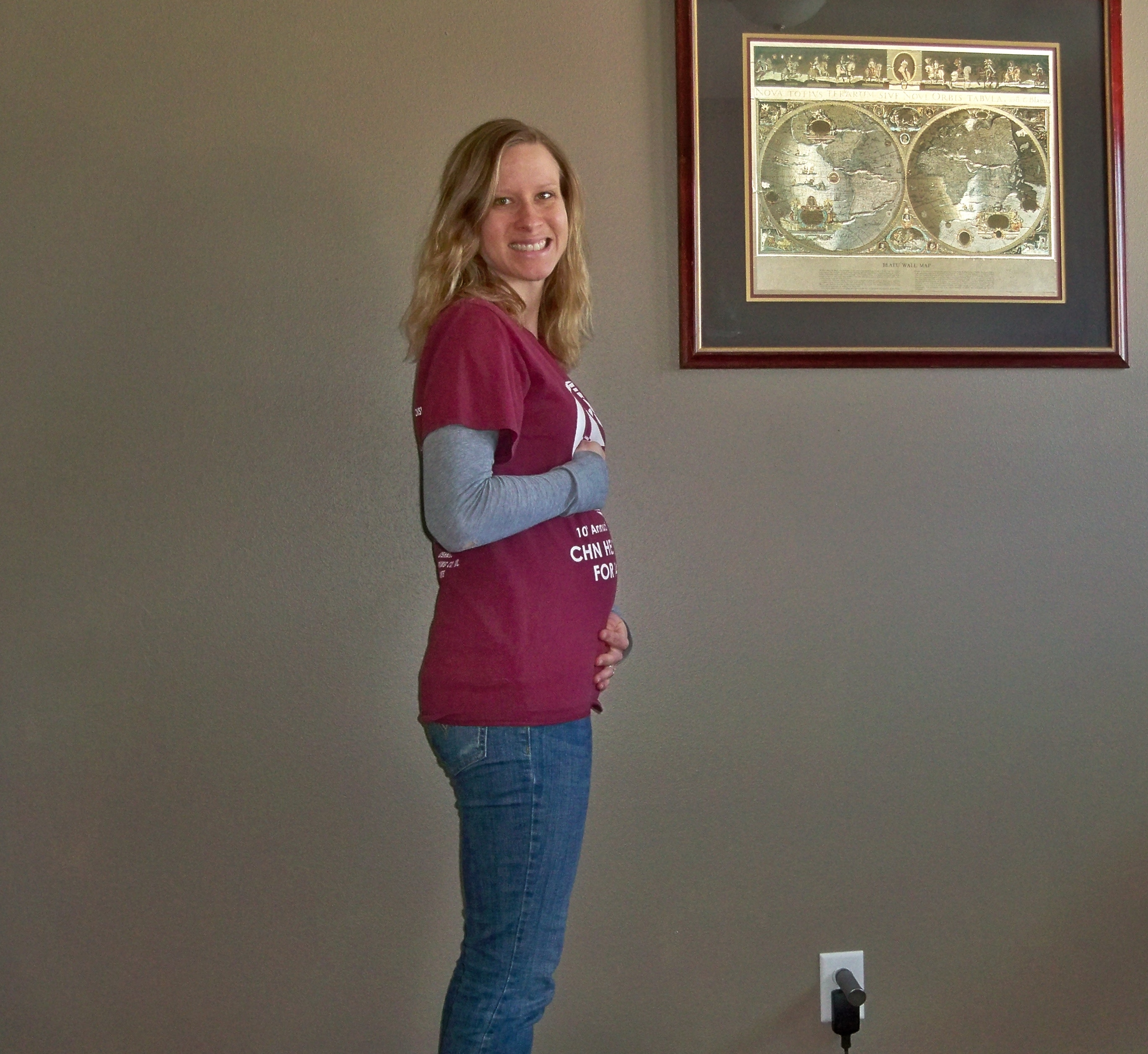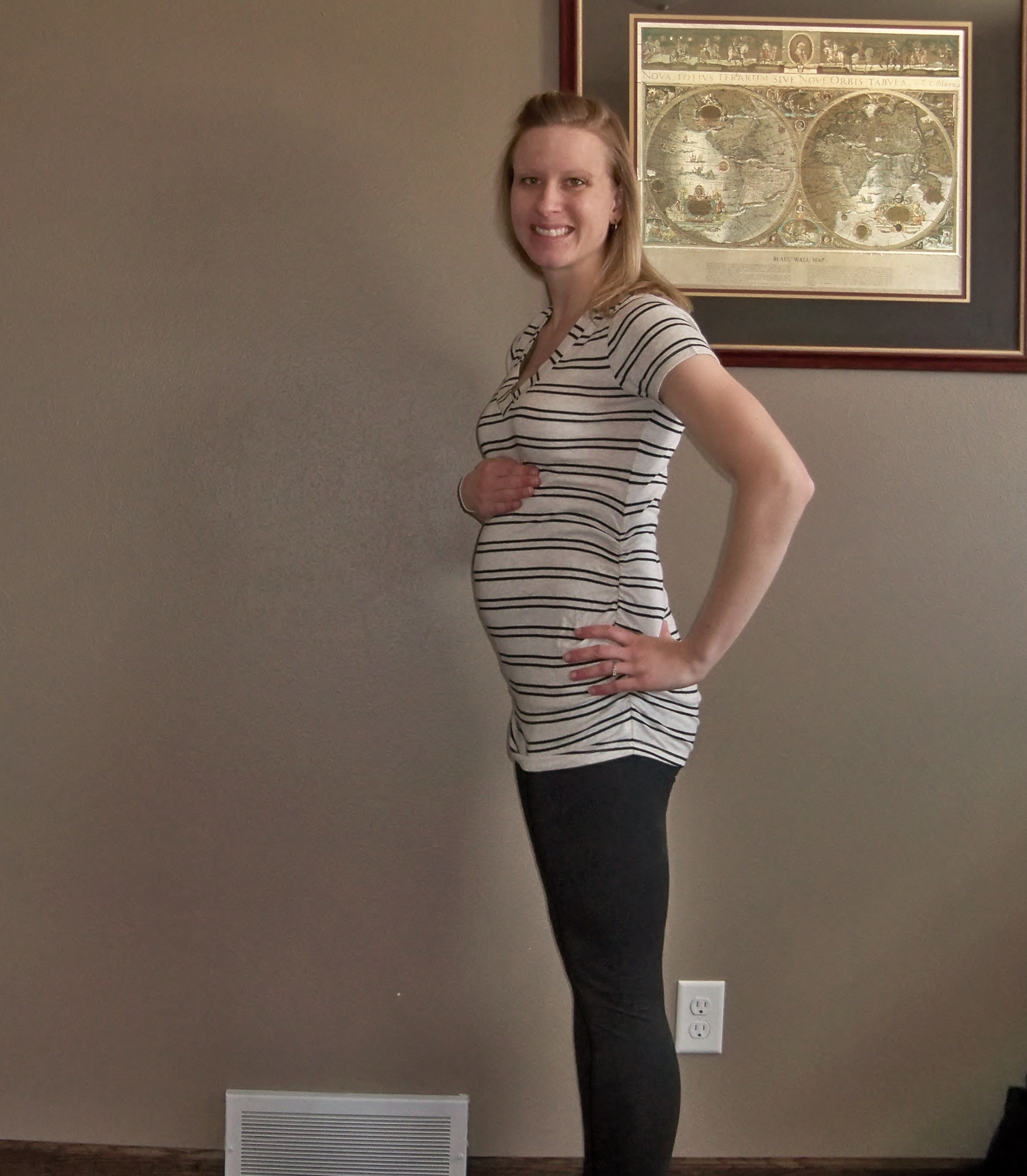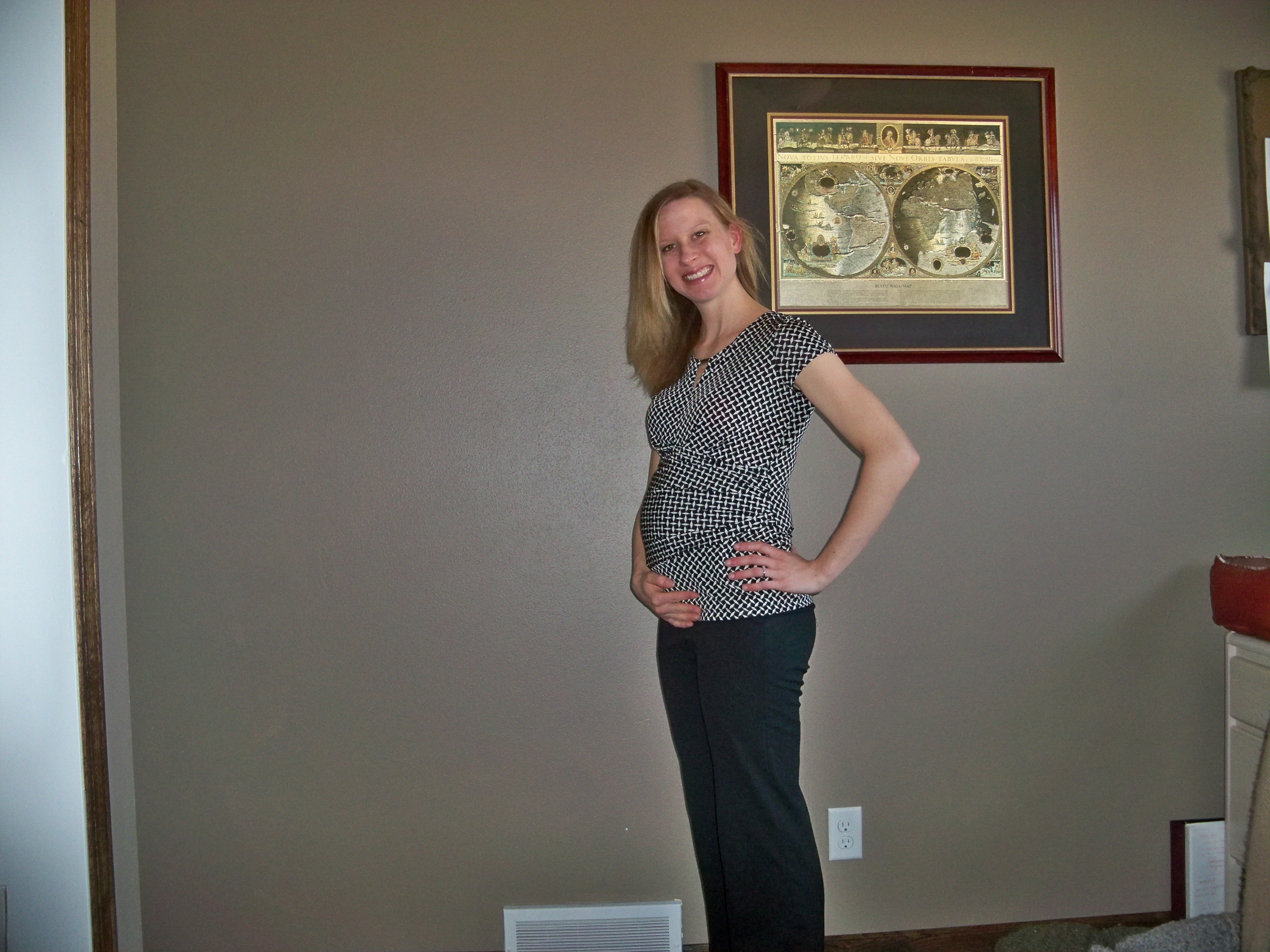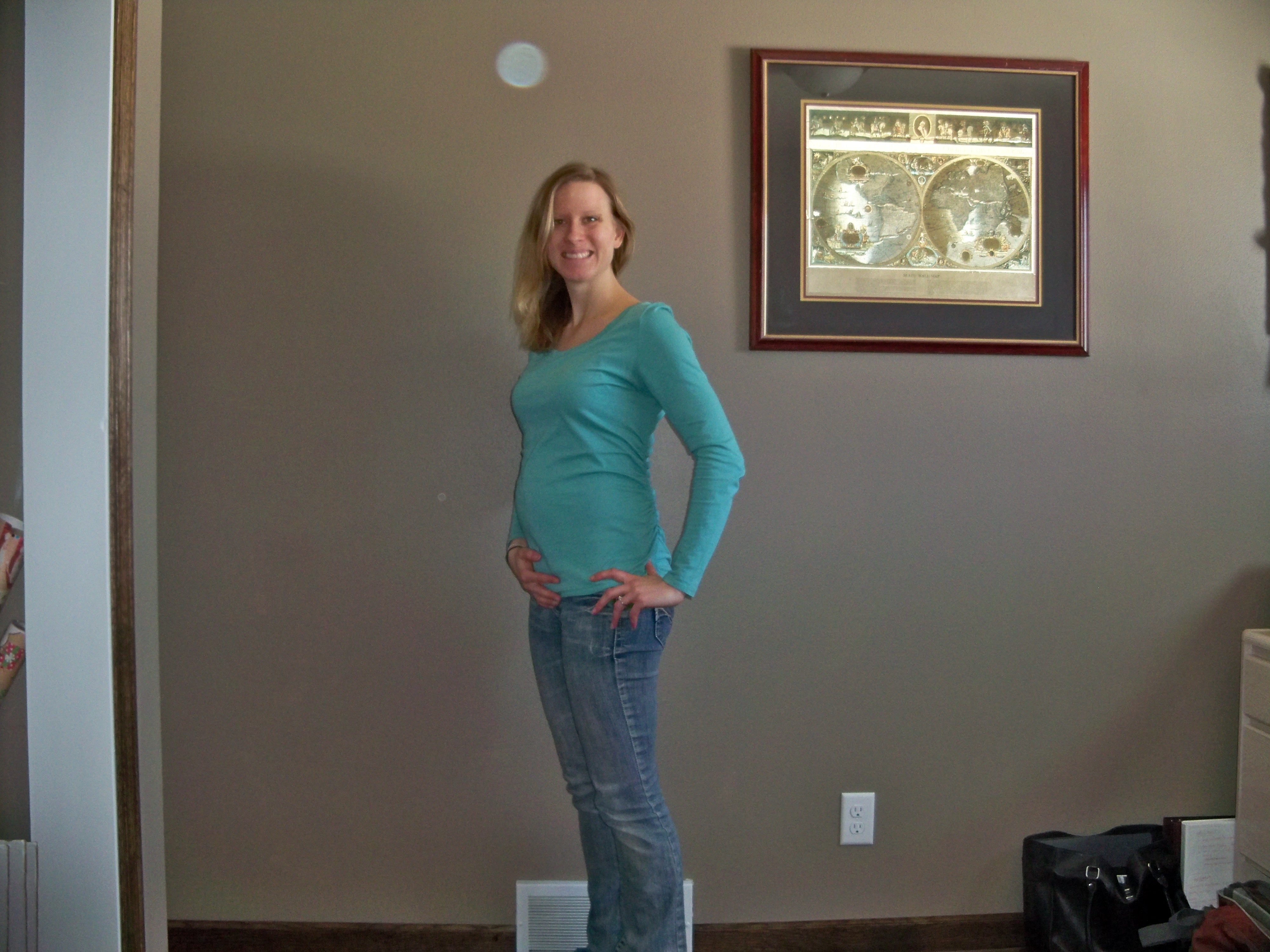 So, on to the pictures. At the start of 2nd trimester I thought I was HUGE. Then each week passed and I realized how much huger I was becoming. Looking back it  makes me laugh to see what I thought was “such a big bump” at the time. Take a look to see how much he has grown: